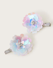 Flower power. Decorated with iridescent sequins and diamantes, these flower clips add endless sparkle to their hairstyles. Two included.