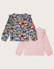 Everyday heroes. Printed with their favourite woodland creatures, this staple duo features ruffle shoulders and long sleeves. Pair with their favourite leggings, jeans, joggers, and skirts! Blue