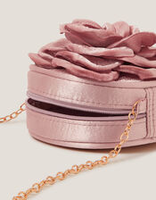 A flower for a pretty flower. Shaped like a floral corsage with a shimmery finish, this bag fastens with a zip at the top and can be held using the slim shoulder chain.