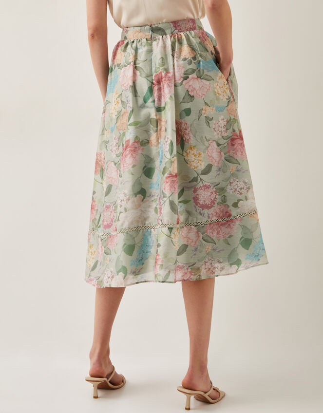 Agnes Floral Print Midi Skirt Green