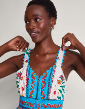 Pretend you're roaming the Amalfi coast in this dress. Bursting with colour, it displays a hand-screen bordered print with botanical designs that will leave you longing for some sun. Falling to midi length, it boasts an elasticated waist, v-neckline and scallop trims to the straps. Ivory