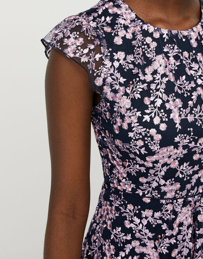 Pretty florals dance across this sophisticated mesh midi dress. It’s cut in a classic shift shape that’s suitable for the office or events and has a soft-touch lining for comfortable wear. Blue