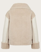 Cream of the crop. Always in style and the perfect pairing to any outfit, this aviator jacket is a top pick for your little fashionista. Boasting faux leather sleeves and a soft, snuggly faux fur body, it's finished with a collared neckline, front zip fastening and side pockets. Cream