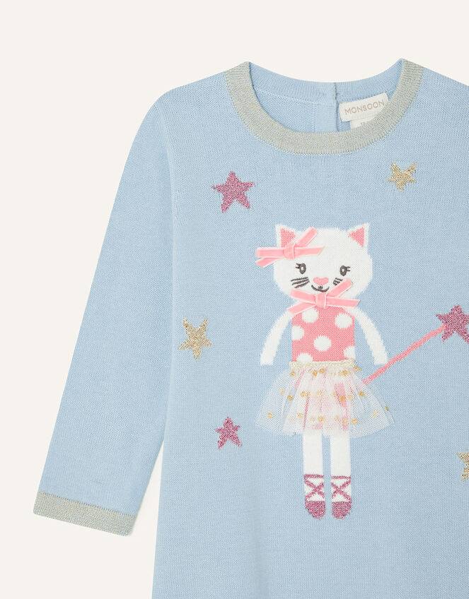 In a pretty combination of blue and pink, our Ballerina Cat dress is the sweetest around. We just love the cat motif at the front, complete with velvet bows. Blue