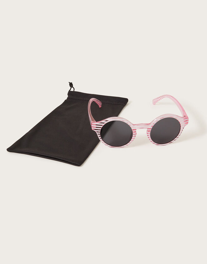 This sweet pair features a rounded shape with a baby pink stripe print throughout the frame. We've also included a fabric sleeve to help keep them protected.