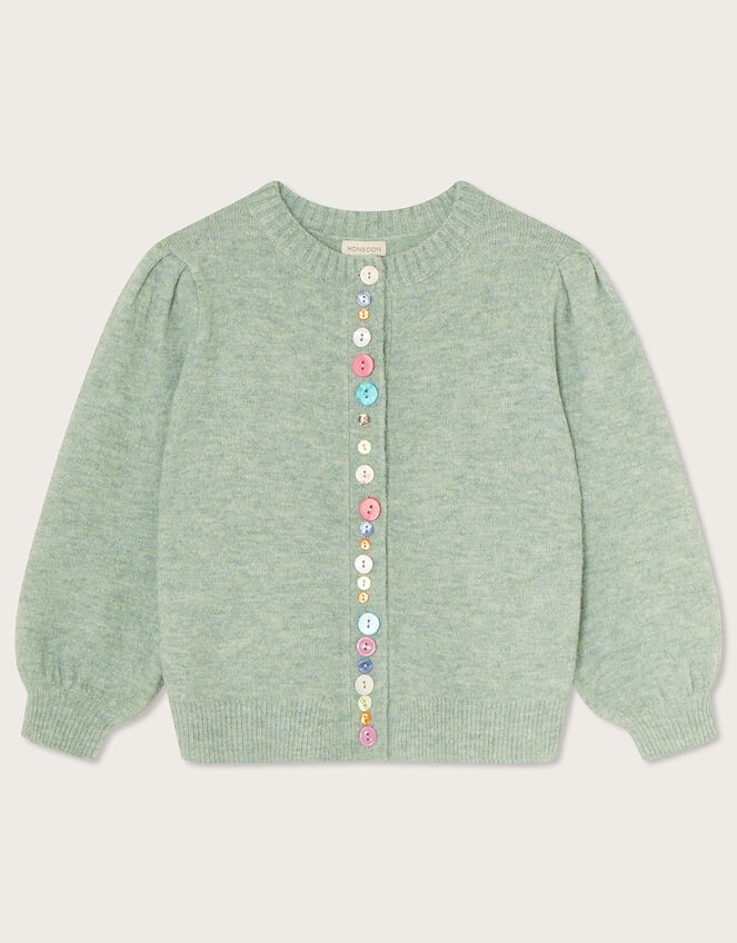 Fabricated in a gentle sage green, this little cardigan is the perfect autumn layer for little ones. It features a mix 'n' match button fastening to the front, with embroidered flower detailing to the back. Green