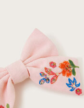 Bow-tiful. Designed with a baby pink bow, this hair clip is finished with floral embroidery and sequin embellishments on a simple barrette clip.