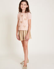 Okay, jazzy pants! An outfit for them to jig and swish on the dancefloor. This set includes a velvet T-shirt decorated with golden bows, and stretchy shorts covered in sparkly sequins to match. Gold