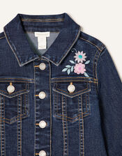 A summery spin on an outerwear classic, this denim jacket is decorated with pretty flowers and butterflies. It's perfect for layering over a T-shirt and shorts. Blue