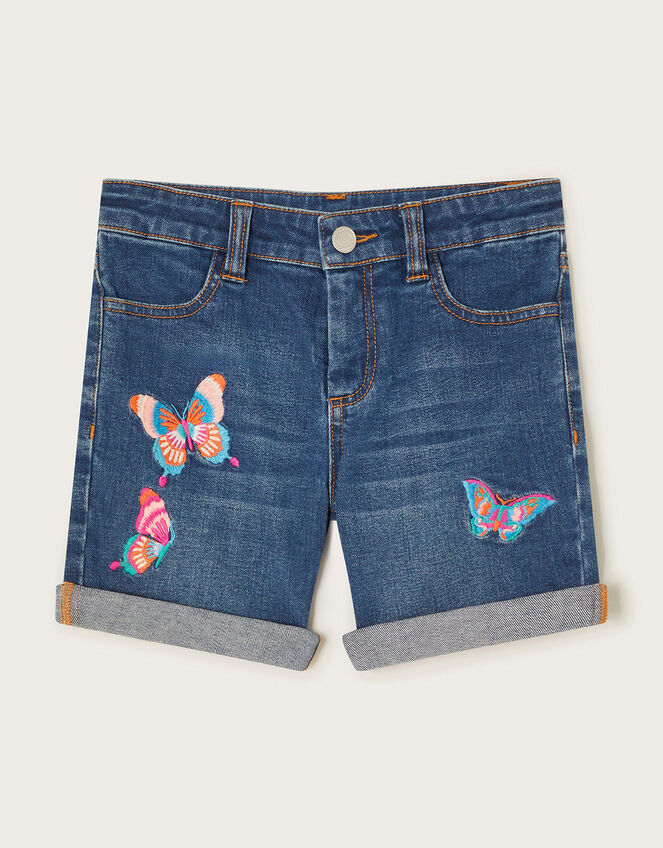 Denim shorts = Summer's here! Cut with roll-up hems, pockets and belt loops, this mid-wash pair feature beautiful butterfly embroidery. Style with their favourite tee and trainers. Blue