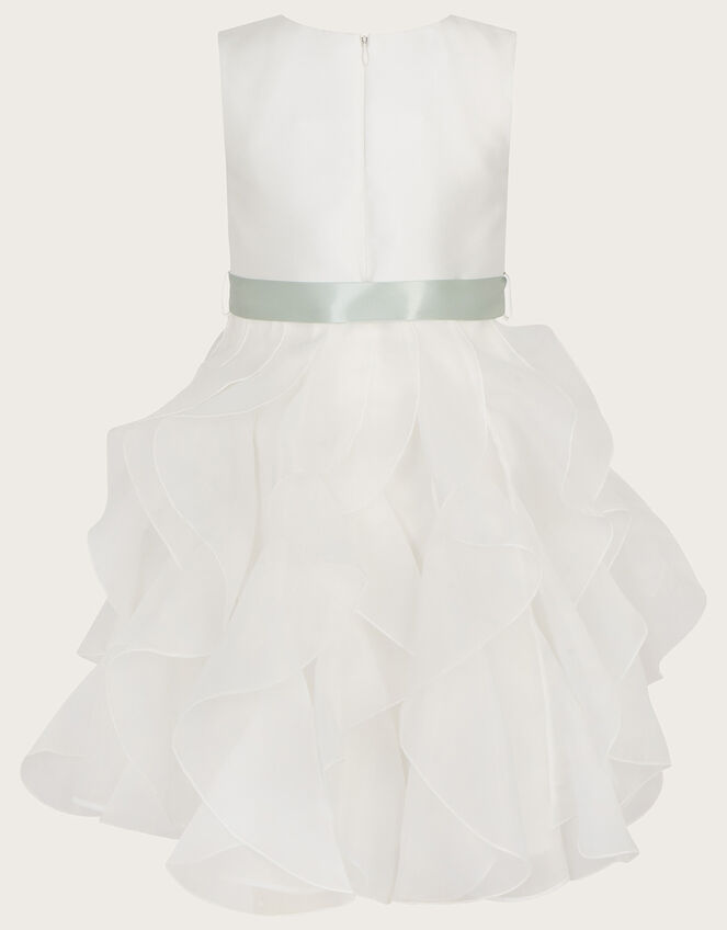 This dress is true party perfection. Made for comfort and partying, the gown features a detachable ribbon belt and layered ruffle skirt that’s great for twirling. Ivory