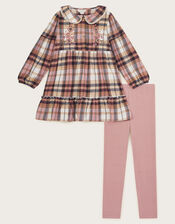 Check Embroidered Blouse and Leggings Set Pink