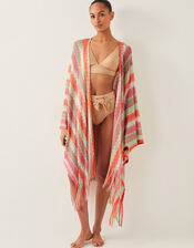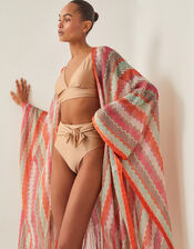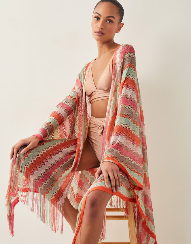 Laptop off, kaftan on. An essential for your next sunshine escape, this kaftan is primed for days spent lounging by the pool. Designed in a super-relaxed and floaty silhouette, its decorated with colourful zig-zag stripes and swishy fringing.