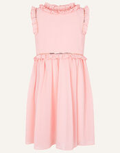 Cody is a suitable option for garden parties and celebrations in the summer thanks to its light, floaty fabrication and sleeveless silhouette. Its coral hue spills throughout with ruffle trims and a touch of sequins to finish. Pink