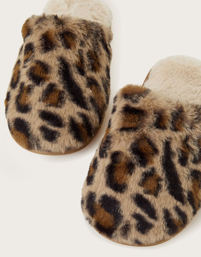 Dana Leopard Faux Fur Mule Slippers Natural