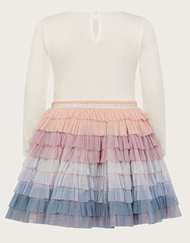 Sleigh all day. Featuring a sparkly sleigh ride design to the bodice and a layered ruffle tulle skirt, this 2-in-1 dress is ideal for the Christmas season (and beyond, if you want!).
