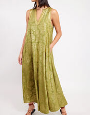 The product: You are gold. Your new summer favourite, this dress is designed with a shiny gold print all-over the relaxed silhouette and sleeveless finish. Cast in an olive hue, it's finished with contrast detailing to the trims and open neckline.