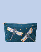 Your new best friend. Designed in luxurious velvet, this pouch features dragonflies embroidered over a starry teal backdrop. A piece that holds your essentials for you, wear it as a clutch, slip it in your tote or display it on your dressing table.