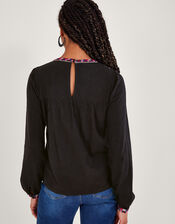 When you don't want your friends to say you dressed in all black again. We infused a touch of colour into this top – just a little – featuring vibrant, bib placement embroidery. The long, blouson sleeves and loose fit combine to create a cool fit. Just add jeans (black ones, if you wish). Black