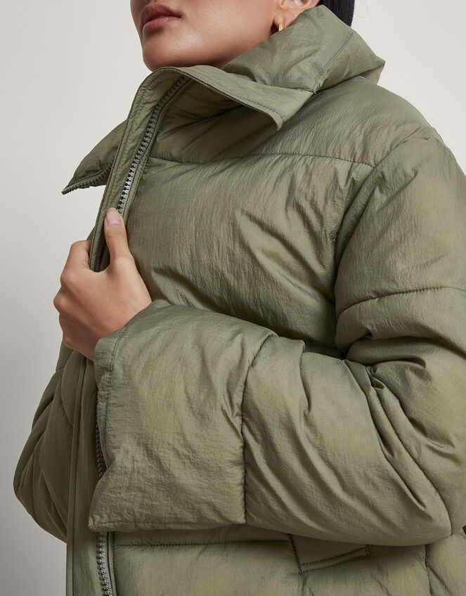 Winter, bring it on. Featuring a khaki padded fabrication, this coat brings warmth to every outfit. It boasts a longline silhouette with a full zip and high neck. And P.S, it has pockets.