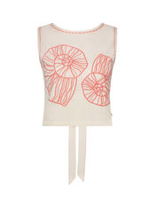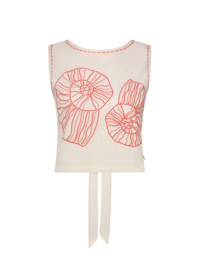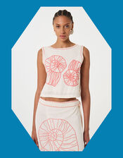The product: Cue: dream destination. A style that exudes summertime, this top is designed with tie-back detail, cropped hem and embroidered seashell motifs in coral shades. Create a cool, co-ordinated look with the matching skirt.