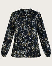Perfect for busy days in the office, this shirt features a pretty floral print, adding a bit of freshness to the workplace. It features delicate lace panelling in a military style on the front panel, with a ruffled mandarin collar.