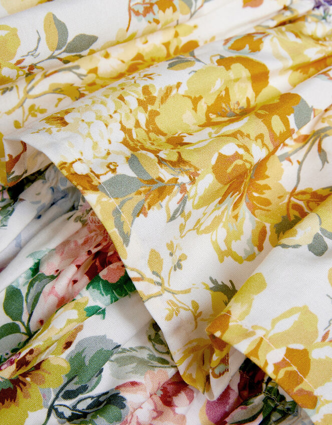 Floral Print Puff Sleeve Tiered Dress Yellow