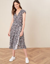 Embrace the summer sunshine in this beautiful midi, with pink and white flowers taking centre stage. Its wrap silhouette will flatter any body type and fastens with a bow at the left-hand side. Surprisingly versatile, the piece pairs nicely with trainers, sandals and heels.