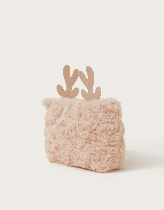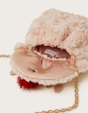 For Santa's little helper. A cute accessory for them to show off throughout December, this bag is cloaked with soft, swirly fluff showcasing a sweet reindeer face, golden antlers and a Rudolph-approved sparkly pom-pom for the nose. Finished with a magnetic popper fastening and gold chain strap.