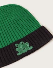 Brrr. This ribbed beanie was made for chilly days, featuring a colour block finish and frog badge. Black