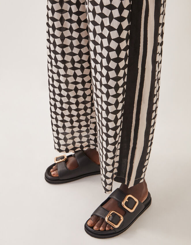 Cool and casual. Featuring an abstract check print throughout, these easy, breezy trousers feature a wide leg and cropped length. The shirred waist give them a boho finish that was made for golden hour. Matching top available.