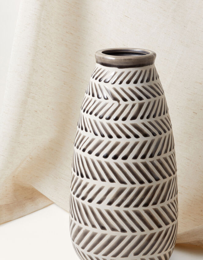 This vase's bold geometric print will stand as a statement piece in your interior design. It's tall, cylindrical shape makes it the perfect home for longer plants.