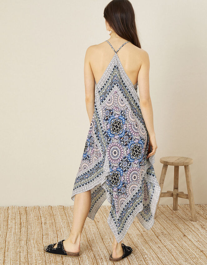 Whether worn on a beachy stroll or in the comfort of your own garden, this printed dress is sure to keep you cool and comfortable. Created in soft, sustainable fabric, it features a low plunge neck and handkerchief hem.