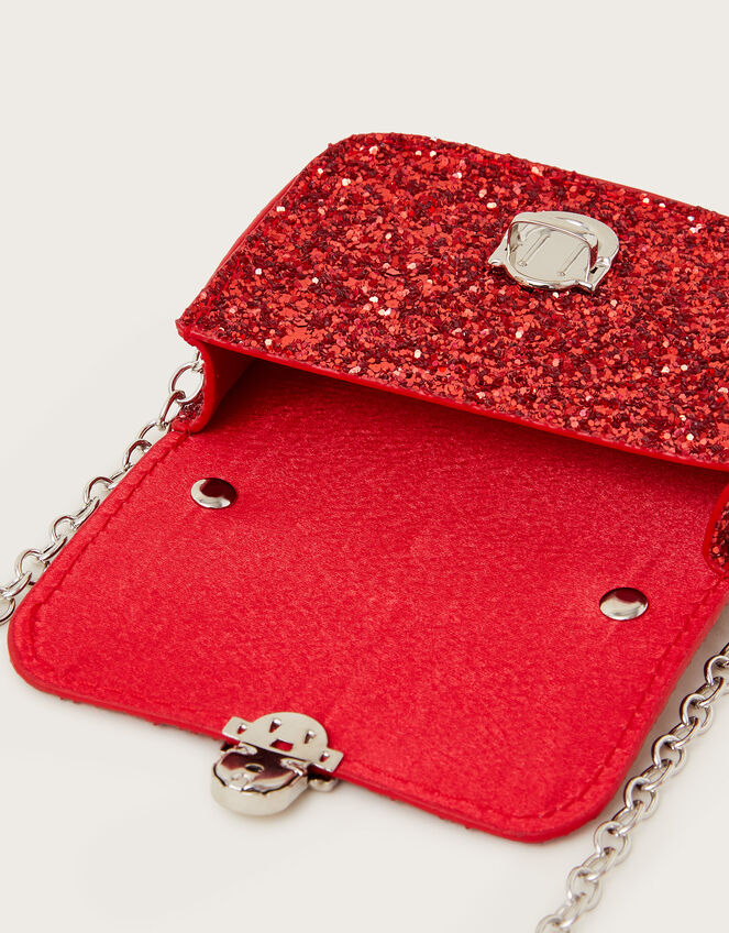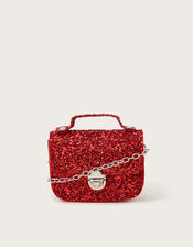 After something magical? Psst... It's this bag. Featuring endless glitter, it has a kiss lock clasp on the front and a top handle, with a metal chain strap to slip over the shoulder. Red