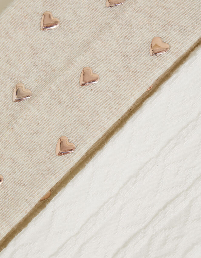 A special set for party season, these multifunctional tights will keep them warm and looking glam. One pair features gold-tone heart studs, while the other is finished in a cable knit.