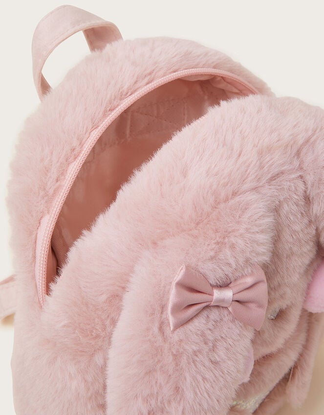 Oh-so-floofy. This faux fur backpack features a rosy-cheeked bunny with floppy ears and huggable arms. The perfect place for their diary and water bottle, it features a zipped main compartment and small zipped pocket on the front. Finished with adjustable straps and a top handle.