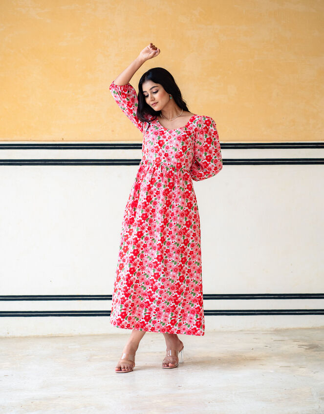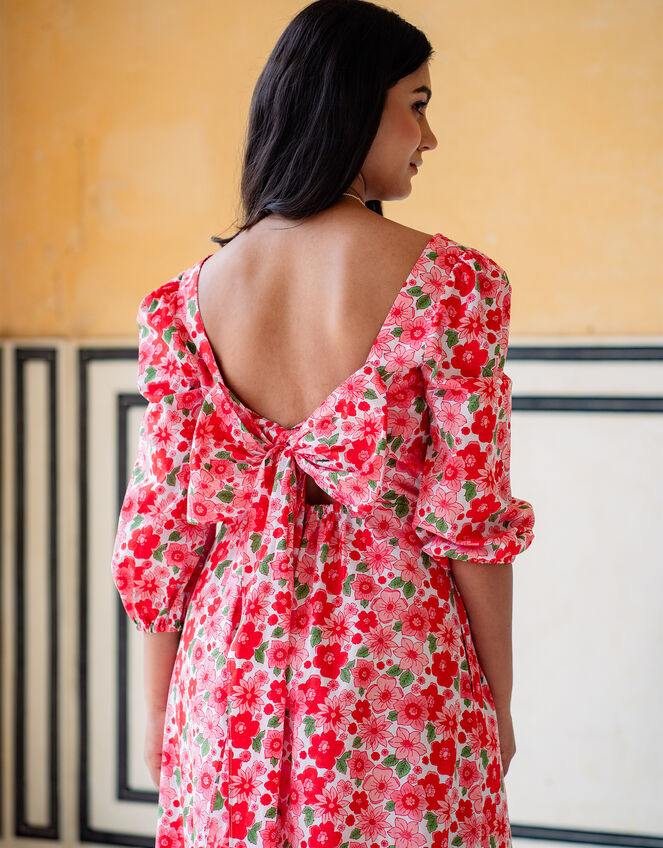 India & Mills Lottie Poppy Print Midi Dress Pink