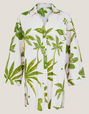 Throw on and go. Whether it's a trip to the beach bar, the evening is starting to draw in, or you're looking for a break from the sun, this shirt is all you need. Spun in soft cotton, it features a button fastening, collar neckline, and super-relaxed fit. Finished with an all-over palm print. Green
