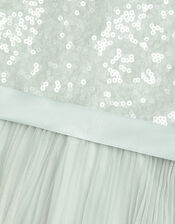 Fit for a princess. Made with a super-sparkly sequin bodice and a knife-pleated skirt, this party-perfect dress is finished with a satin bow to the waist and zip fastening on the reverse. Green