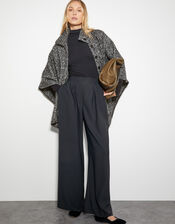 A wardrobe hero for your outerwear collection. Polished and preppy, this poncho-style coat is designed with a textured tweed fabric, front button fastenings and belted waist. The floaty silhouette and neutral tones means its a great layer to go over all your outfits.
