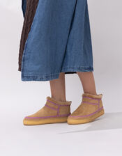 The product: Cosy steppin'. These ankle boots are the trans-seasonal piece. Lightweight and pillowy soft, these boots feature a sheepskin lining, insole, and contrast stitching through the upper.