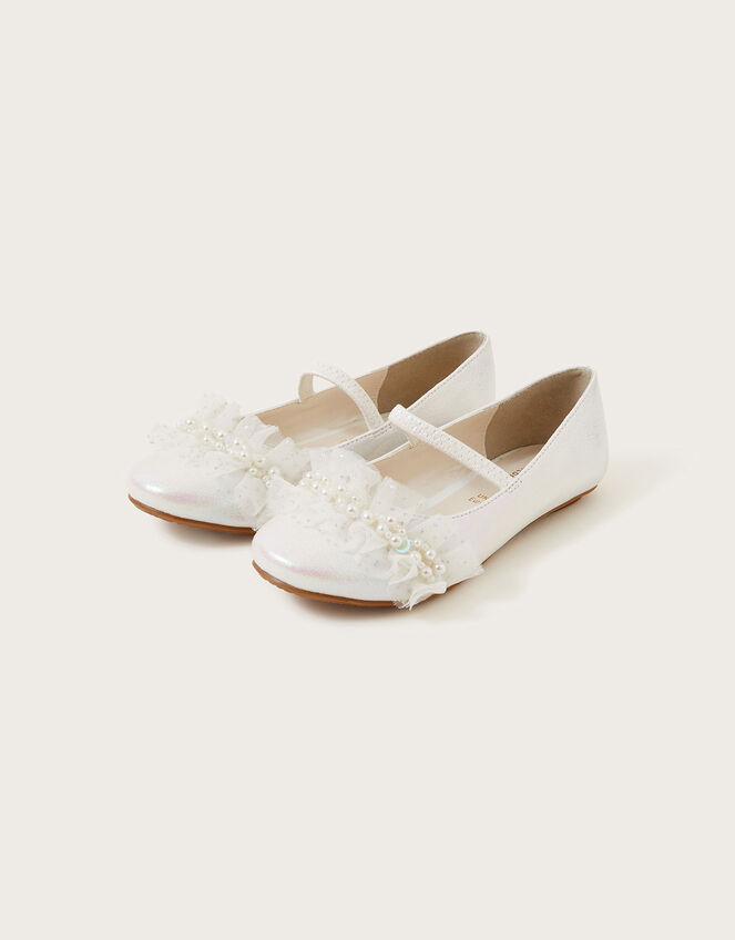 Fairy feet! Slip these on and put an enchanting spin on their outfit with these shoes. They're designed in a classic ballerina flat, with a cluster of pearls to the toe and over-the-foot elastic strap for a secure fit. Ivory