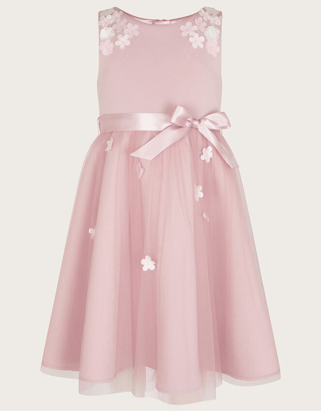For the mini partygoers: our Layla dress was made for special events. Designed in pink tulle, it's adorned with 3D flowers through the skirt and sleeveless bodice, whilst the waist brings in definition with a glossy tied bow. Style one of our children's cardigans over the top when the afternoon chill comes in. Pink