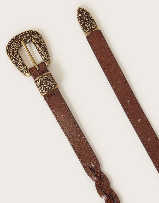 What's a belt without a western twist? This luxurious leather rendition combines a plaited design with an intricate buckle, an easy way to pull your outfit together (literally!). Tan