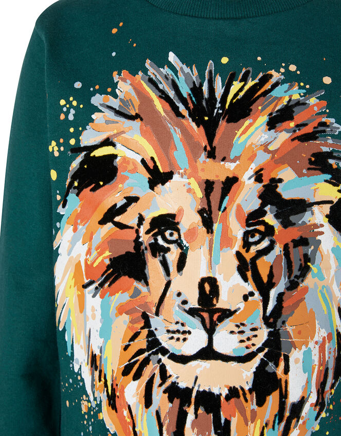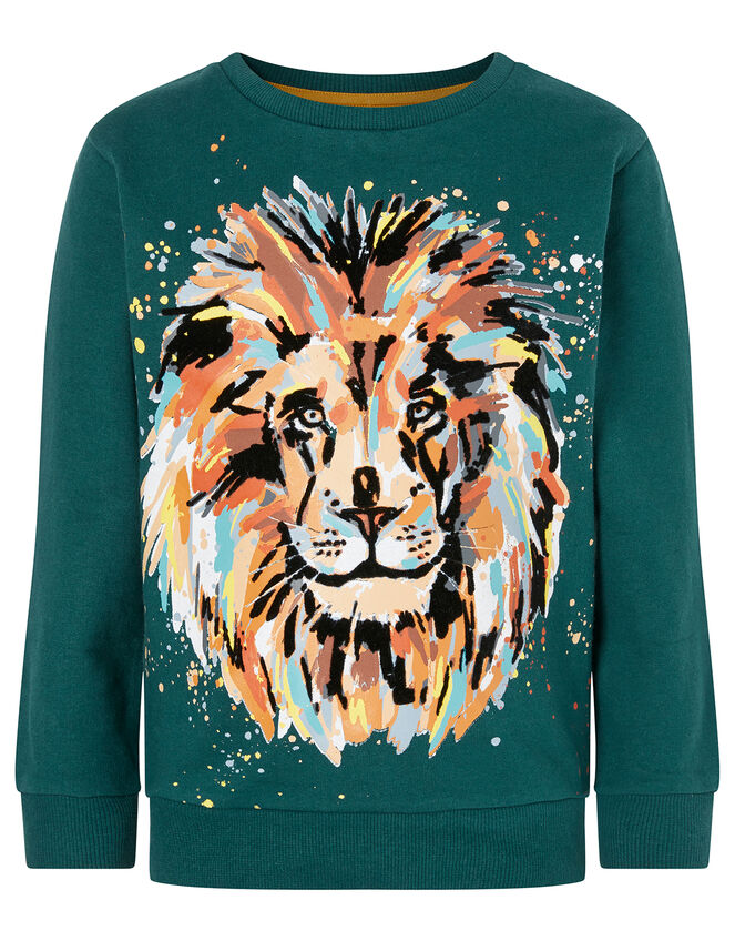 A fun choice for casual days, this cotton sweatshirt features a colourful, painterly lion design! Team with jeans and trainers. Green