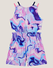 Yay for summertime. The perfect one-piece for sunny adventures, this playsuit showcases a dreamy marbled print in pink, purple and blue. Finished with adjustable straps and cut-out sides. Blue
