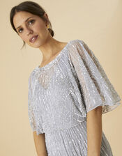 Margo Embellished Shorter Length Dress in Recycled Polyester Silver
