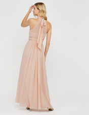 This elegant maxi gown is perfect for those extra-special occasions. It’s crafted from sheer chiffon with a sweetheart lining, and features a high neckline, a bead-embellished waist and a beautiful bow fastening on reverse. Nude