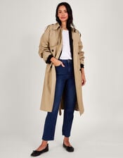 This trench coat is a staple come rain, shine, spring and autumn. Cast in wear-with-everything camel, it features double-breasted buttons, shoulder tabs and a belted waist. Camel