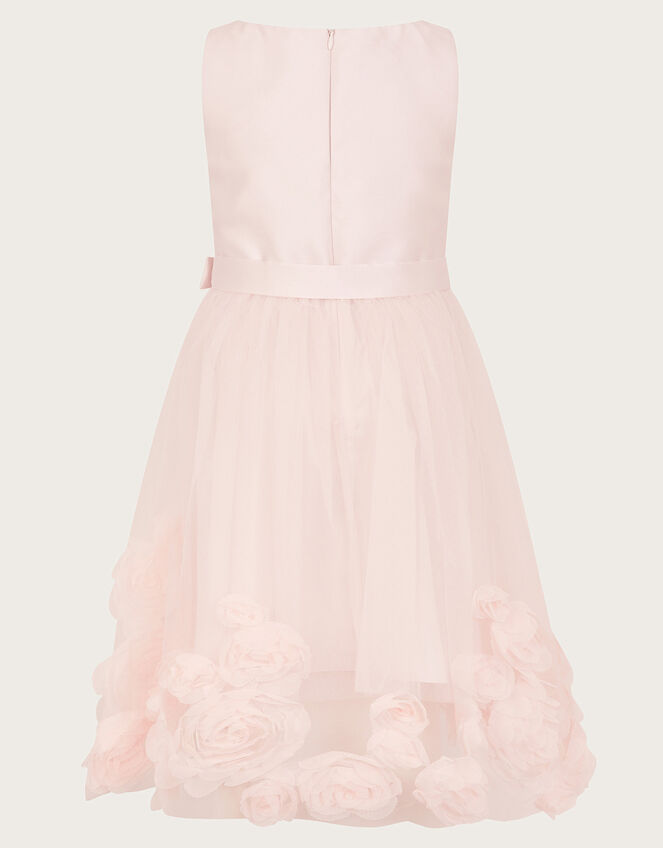 Party time: Incoming. Slip them into this perfect party dress, a piece fit for true royalty. It combines a snug, sleeveless bodice and a silky satin detachable belt, whilst the skirt is embellished with rows of 3D roses. Fastens on the reverse with a zipper. Pink